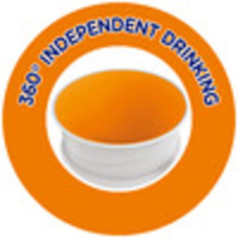Kifolyás-biztos ivópohár, a pohárból ivás gyakorlásához. Ez a pohár 360° fokban körbeforgatva sem csepeg, miközben a gyermek úgy ihat belőle, mintha egy hagyományos normál pohárból inna.
