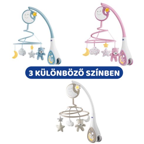 A forgóka felső részén lévő zenélő-világító Holdacska levehető és külön is rögzíthető a kiságy szélére vagy akár a babakocsi első karfájára. A Holdacska zenél és fényeket ad, akár útközben is!