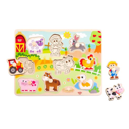Minden figura praktikus fogantyúval rendelkezik, amellyel leválaszthatók a tábláról, és élénk színekkel is színezettek, hogy már egészen kicsi kortól fejlesszék a színérzéket.