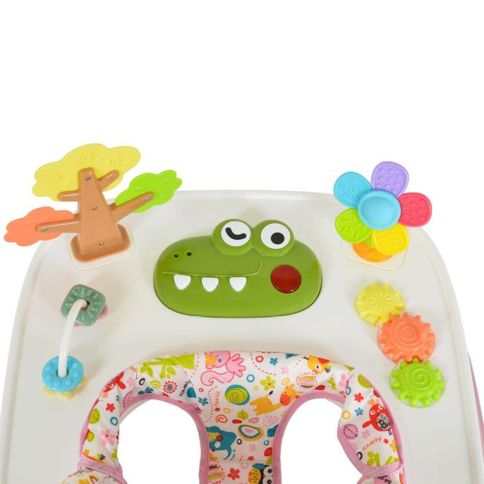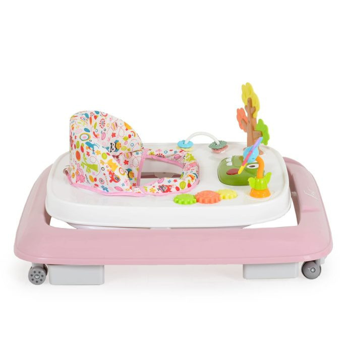A modell érdekes kialakítású, 5 játékkal, 3 gombbal, 6 dallal (magyar népdal is megtalálható köztük!) 6 különböző nyelven és fényjelzéssel. A magassági szint 3 pozícióban állítható. A termék 4 kerékkel és 6 stopperrel rendelkezik. Használaton kívül kompakt méretűre összecsukható. A bébikompot szép színes dobozba van csomagolva, ami alkalmassá teszi ajándékozásra is.